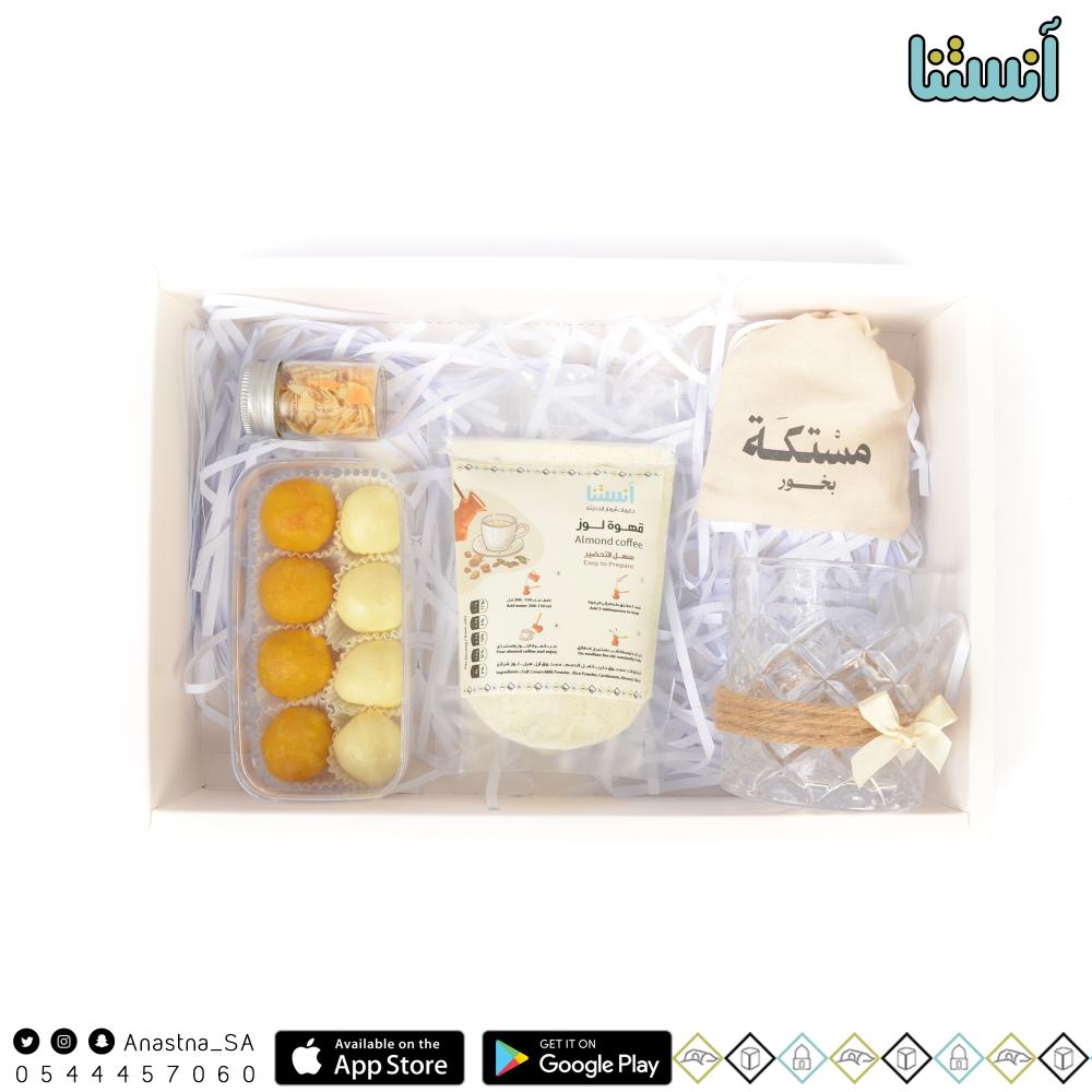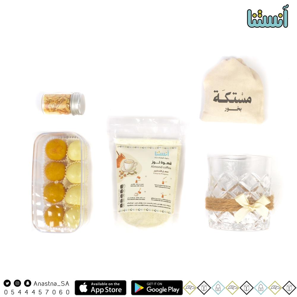 خلطة قهوة اللوز - لبنية ولدو - لوز وهيل - مستكة - كاسة زجاج
